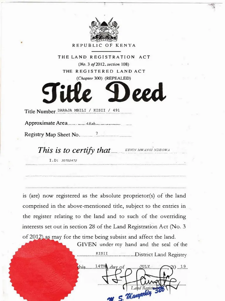 - Title Deed Number (e.g., LR No. 12345/Nairobi)