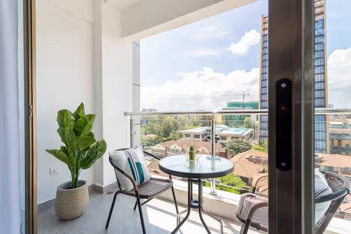 Stay in the heart of Kilimani at this bright and stylish 1-bedroom ensuite apartment, ideal for both short-term and long-term stays. Perfect for business travelers, couples, or solo guests, the space is thoughtfully designed with a King-size orthopedic bed, blackout curtains, a smart TV, fast Wi-Fi, and a fully equipped kitchen. Floor-to-ceiling windows and a wide balcony invite in natural light and city views, creating a calm and airy atmosphere.