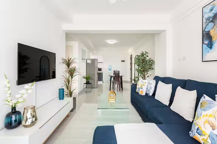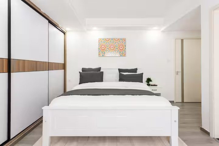 Relax on a plush king-size bed. Includes smart TV, equipped kitchen, fast Wi-Fi, 24/7 security, free parking and gym.