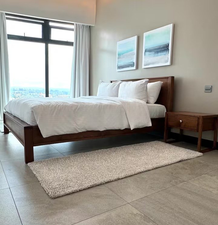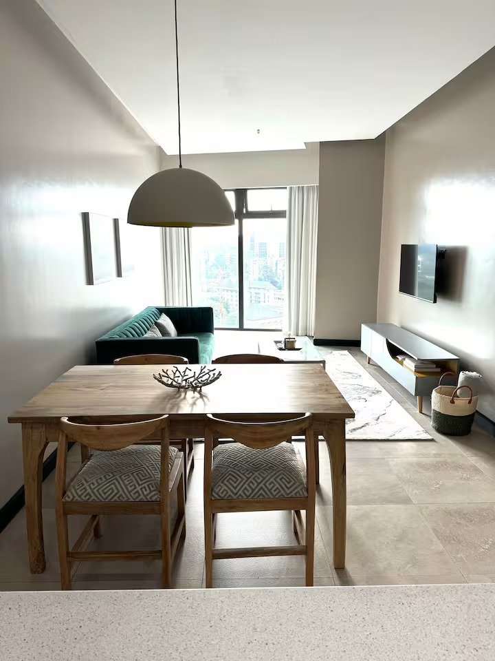 The listing has amazing natural light with views of the surrounding trees in the neighborhood and you can spot the super highway & Ngong hills from a distance. The natural light beams directly into the space creating great effects on the light grey and chrome hints on the furniture as well as the fine wall art.