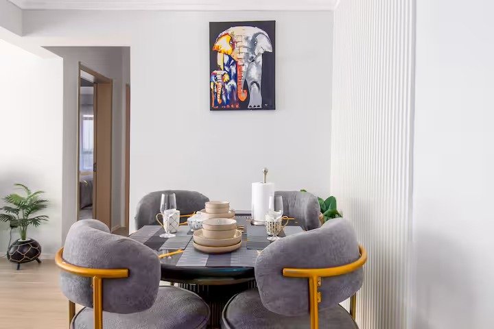 Enjoy comfort and style in this serviced 1-bedroom apartment at Leo Residences, located in Nairobi’s Lavington area. The apartment features a spacious living area, fully equipped kitchen, cozy bedroom with premium linens, and a modern bathroom. Enjoy amenities like high-speed WiFi, gym, 24-hour security, and easy access to shopping and dining at nearby malls. Ideal for both business and leisure stays.