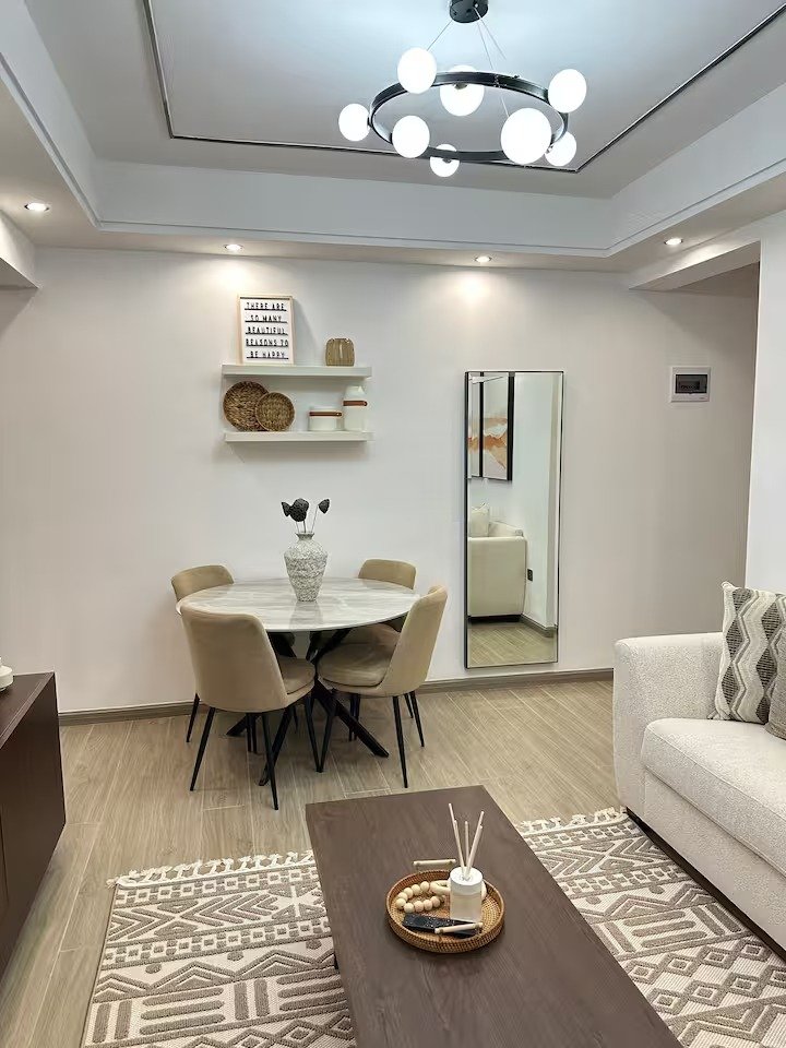 • Bright, open-plan living and dining area with modern décor