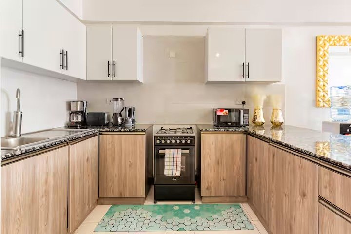 Stylish 1-bedroom apartment on the 12th floor in Kilimani combining comfort and convenience. Just 5 minutes to Yaya Centre, Adlife Mall, 2 minutes to Naivas, and near Westlands, Nairobi National Park, and CBD. JKIA is 30 minutes away (traffic dependent).Relax on a king-size bed, enjoy a smart TV, fast Wi-Fi, and equipped kitchen. Benefit from free rooftop pool, gym, parking, full backup generator, and 24/7 security. Perfect for business travelers, couples, or solo guests on short or long stays