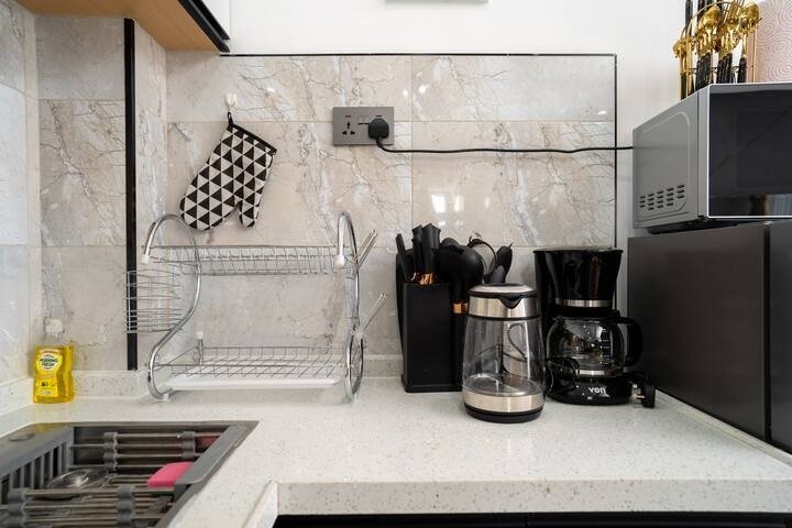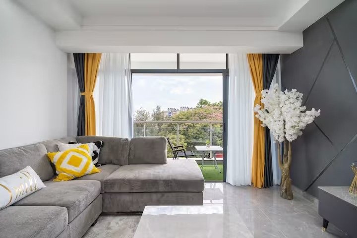 Indulge in luxury at our 1-bedroom apartment in the heart of Kileleshwa, kilimani and westlands. Has an opulent living space with high-end furnishings, a fully-equipped gourmet kitchen, and modern electronics e.g. a 55′ TV. After exploring the city, retreat to your tranquil bedroom with a queen-sized bed, ensuring a peaceful night’s sleep. The private balcony has stunning city views, ideal for a peaceful romantic evening and Perfect for a refined business trip