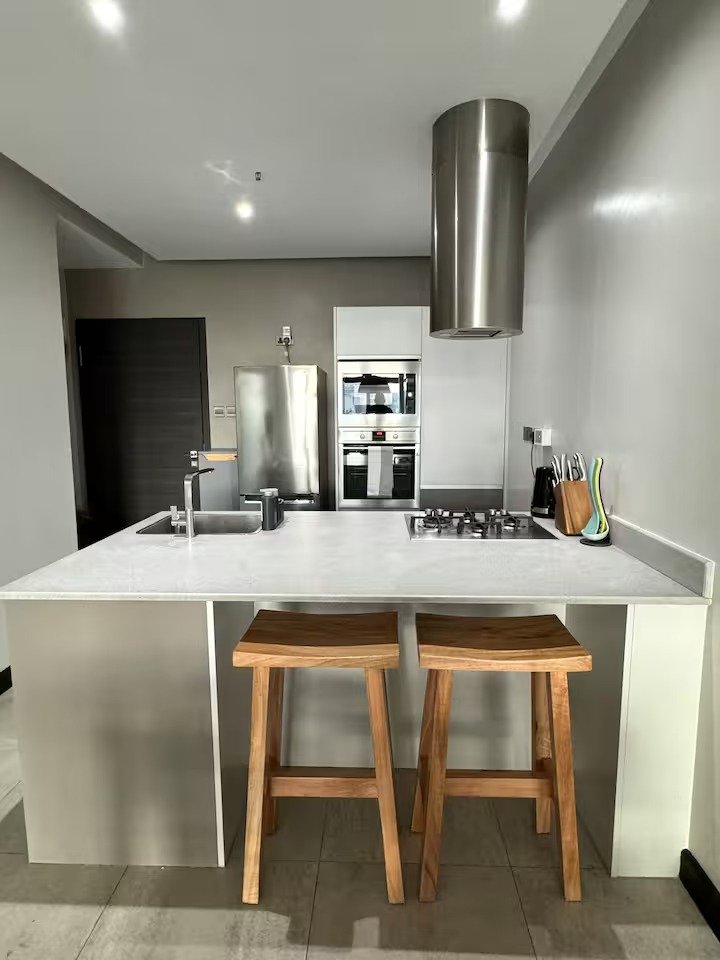 The listing has amazing natural light with views of the surrounding trees in the neighborhood and you can spot the super highway & Ngong hills from a distance. The natural light beams directly into the space creating great effects on the light grey and chrome hints on the furniture as well as the fine wall art.