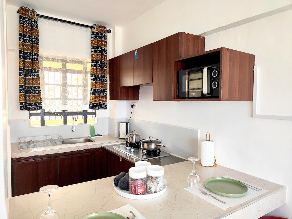 This light and airy 1-bedroom apartment combines comfort, convenience, and a touch of city charm. Perched on the 10th floor, it offers sweeping views of Kisumu Stadium and the surrounding cityscape. Inside, you’ll find a cozy living area, a fully equipped kitchen for your cooking needs, a modern bathroom, and a peaceful bedroom filled with natural light.