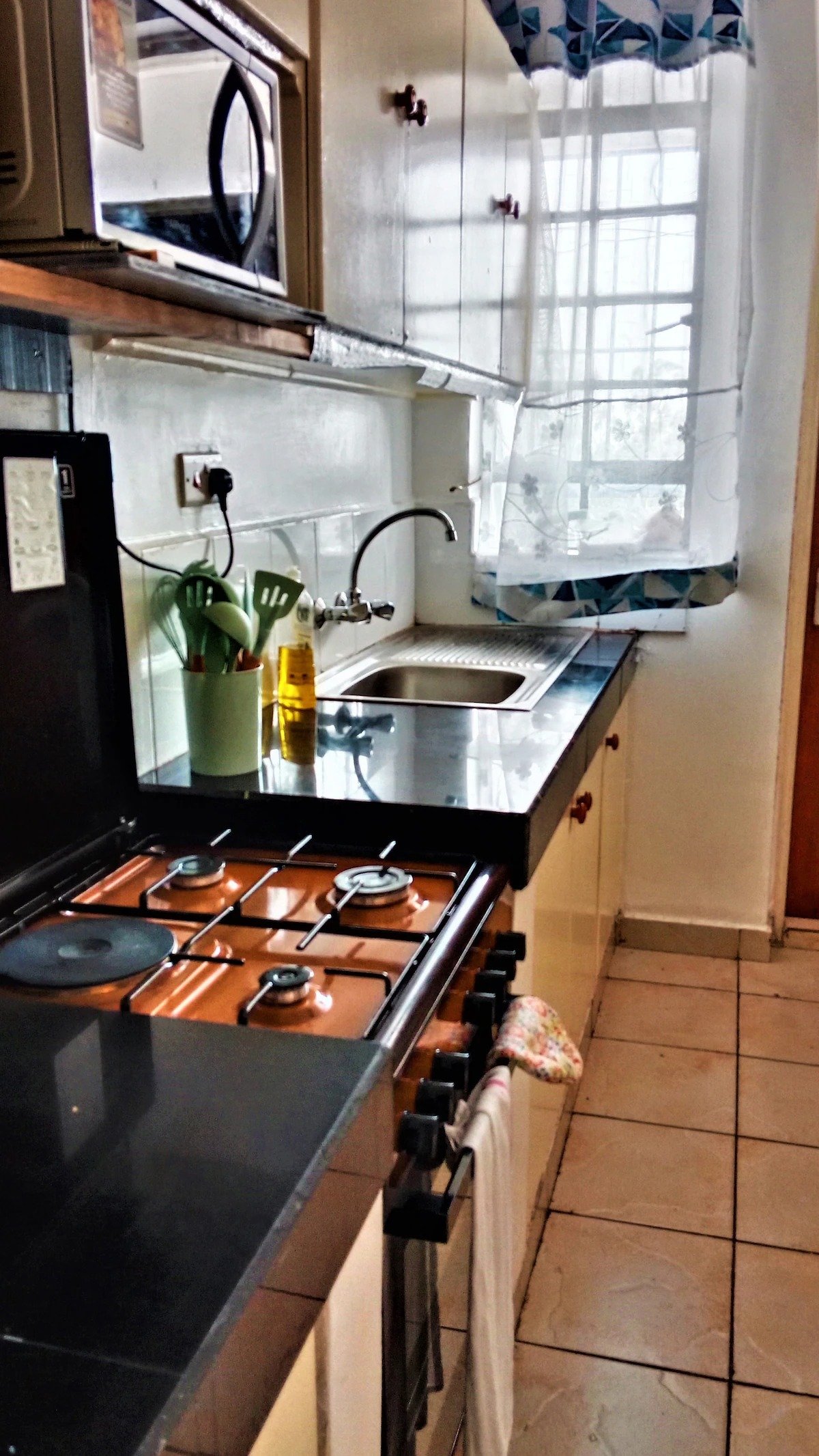 A modern one bedroom apartment with modern furnishings, fully equiped kitchen that gives you the ‘home away from home’ feeling. Whether you are lounging in the living area streaming the latest entertainment on smart TV while watching your favourite Netflix show or getting some well earned rest on the cozy beds with luxury white linens, you’ll fall in love with everything the apartment has to offer. Located only 2km from kisumu CBD.
