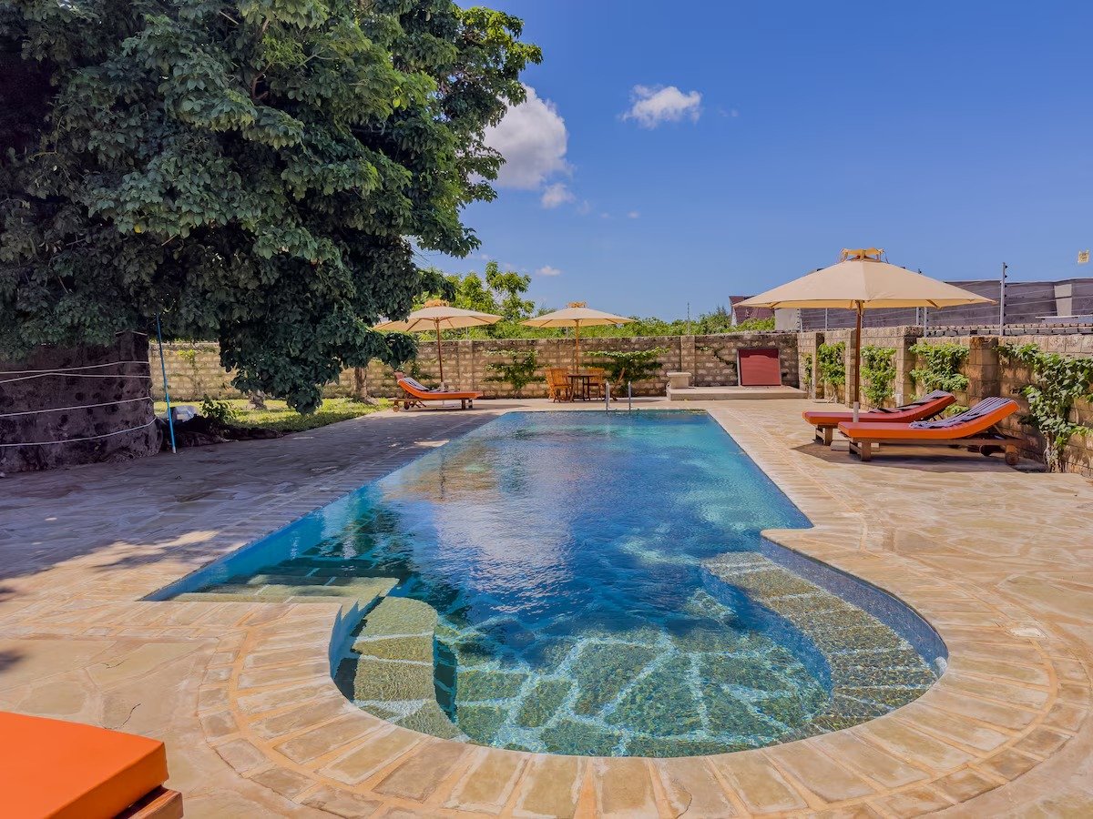 1 spacious, air-conditioned bedroom with a queen-sized bed and ample closet space