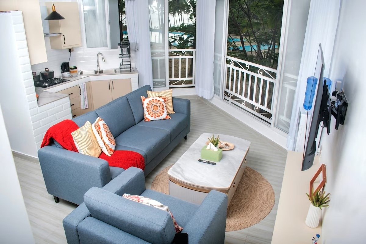 A stylish 1-bedroom beachfront apartment along Silversands beach in Malindi, Kenya.