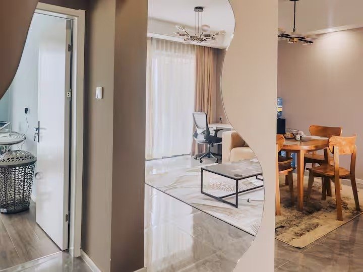 An infinity pool to cool yourself in the January sun and a playground for the child to let the inner child wonder (for children of course). There’s a mini-mart to grab a quick bite, that washcloth you may have forgotten on your trip to Nairobi, or that laundry detergent that you adore. Overall the property is a ray of sunshine literally and figuratively with sunlight bathing the entire house enough to sun bask on the couch engulfing the entire property with an airy feel that is unmatched.