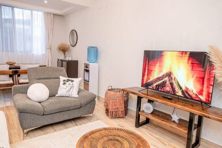 Kick back and relax in this calm, stylish space, at Elite Residence on Westlands Road in Nairobi. It is thoughtfully furnished to guarantee comfort during your stay. It has an equipped kitchen, smart TV, WiFi, washing machine, Gym facilities, heated swimming pool, gorgeous view of Nairobi skyline, secure parking, and daily housekeeping if needed.