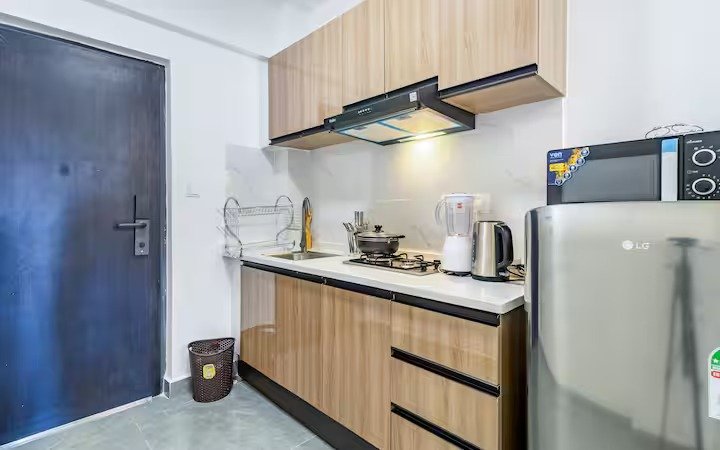 You will love the vibrant neighborhood just steps away restaurant,cafes , supermarket .Plus with free parking , High speed lifts, easy self check,Full power back up system your stay is hassle free