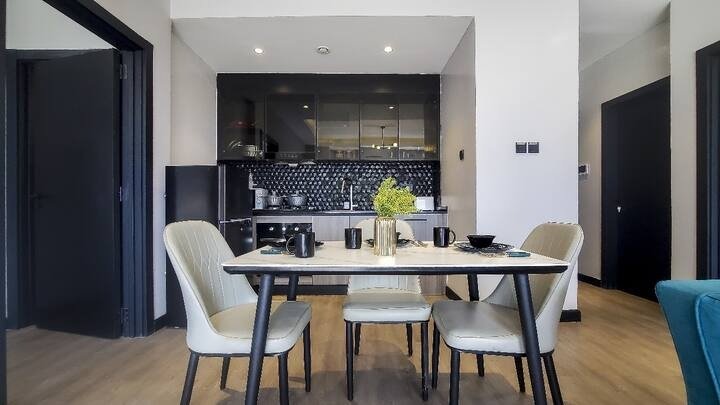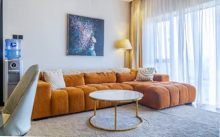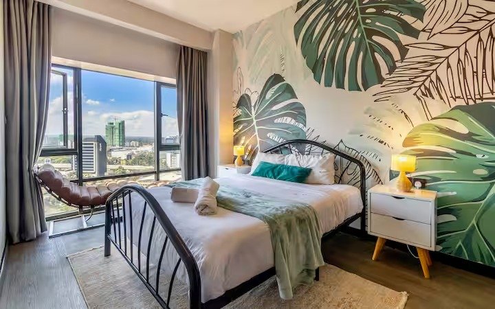 This is a 2bedroom apartment rented out as a 1bedroom. The rooms are well designed with minimal clutter and neutral colors but with a pop of color. The rooms are well lit with natural sunshine. A king bed is available with a nice lounge chair in one of the rooms. There is Netflix and YouTube available on the smart Tv. Backup generator available so no interruptions of electricity.
