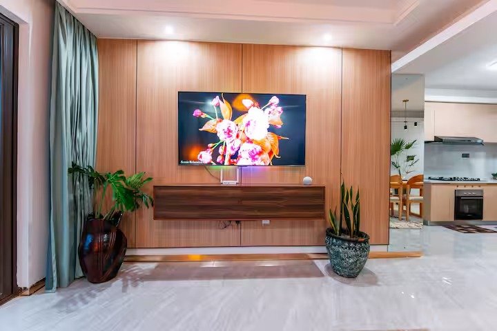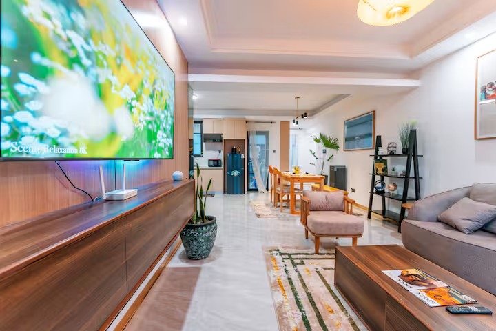 This Cozy home away from home is Located in Kileleshwa, the 7th floor of Leswha Apartment, just a few kilometres off JOMO KENYATTA AIRPORT. This space offers a stunning view of the city center from your private balcony. The apartment is thoughtfully designed with a well-furnished luxury living room featuring a 65-inch Smart TV, beautiful artworks, stylish lighting, and a cozy bookshelf. For added convenience, Alexa is connected to all electronics, allowing you to control your space effortlessly. The standard rooms and bathrooms are designed for comfort, making this apartment a true home away from home.