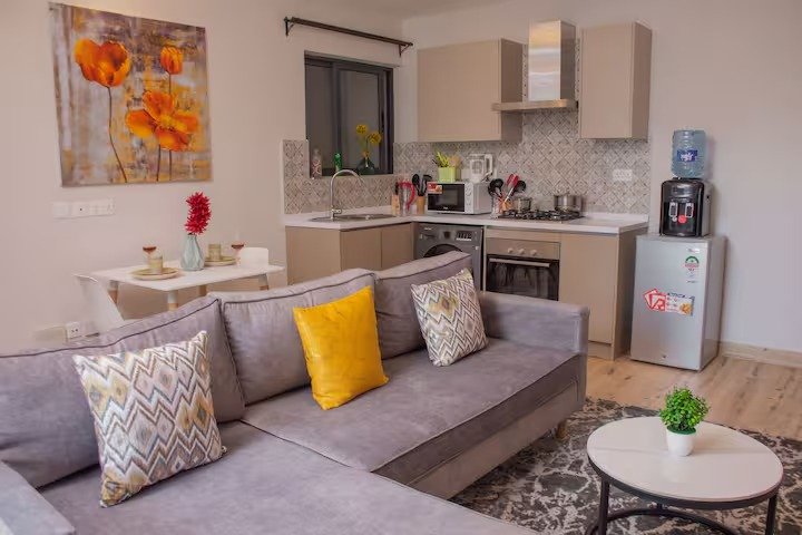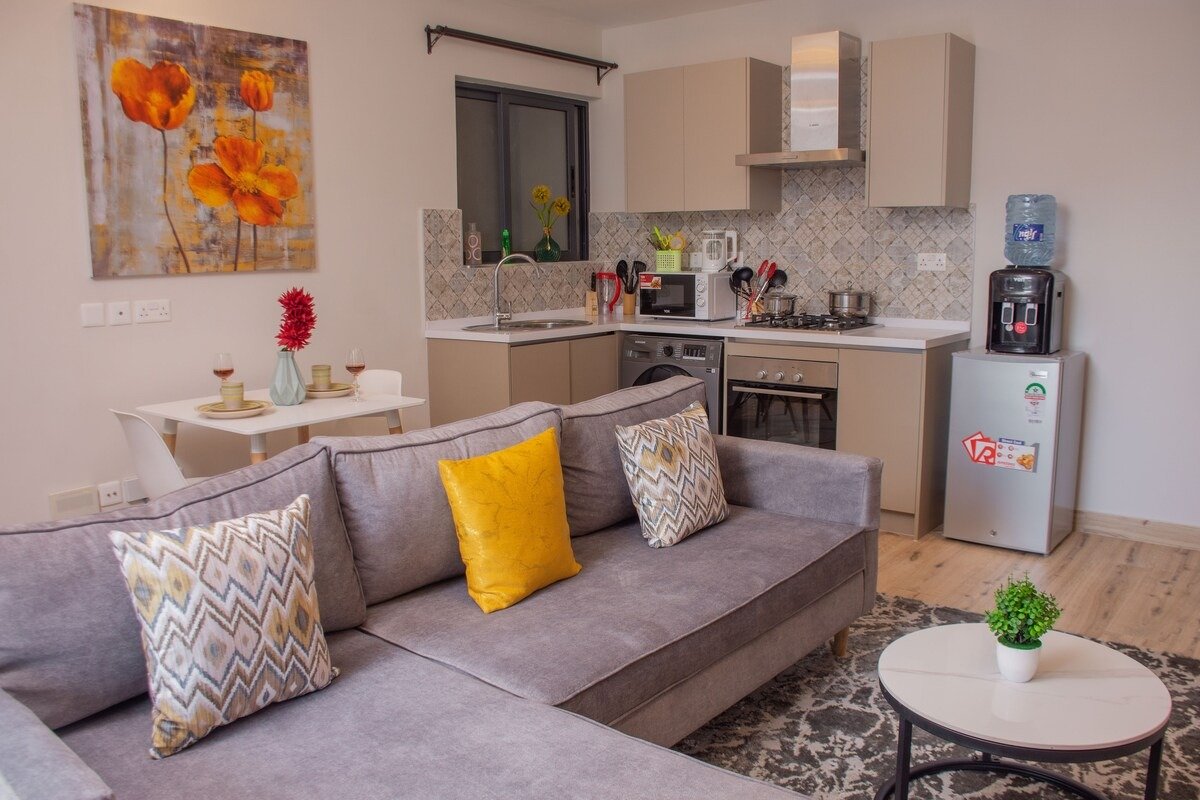 This is a beautifully designed modern apartment block, located in a serene neighborhood, with fast and well-maintained elevators. There is a rooftop pool and a fully equipped gym that is available to all guests. The apartment also has spacious modern entertainment patios where you can relax with your family and friends, have a meeting, read by the pool, or bask in the sun. There is plenty of free parking with 24/7 security guards available. The security detail and 24/7 camera surveillance are there to ensure you are safe and protected. When you have a guest or delivery, the security guards call you through the intercom in the apartment to confirm if you are expecting anyone/thing.