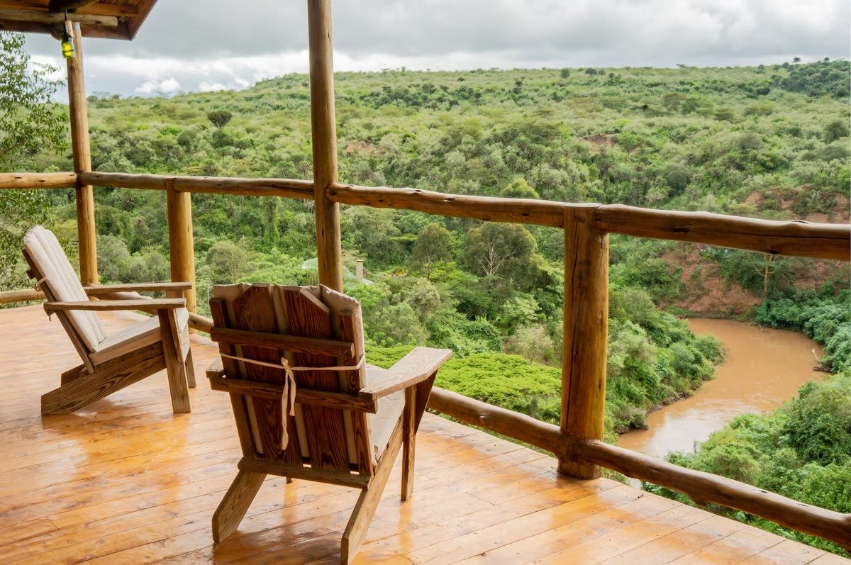 The Romantic Honeymoon Hut is Rustic-Luxury at its finest! A fully furnished cottage with full kitchen and required appliances for self-catering. Sense the quiet stillness and release worry and tension. Gaze at the Malewa river below and the vast skies above from the beautiful verandah looking directly down onto the river.. Enjoy an exquisite experience with a canopy bed with overhead, secret mirror, a jacuzzi tub and intimate fireplace for!