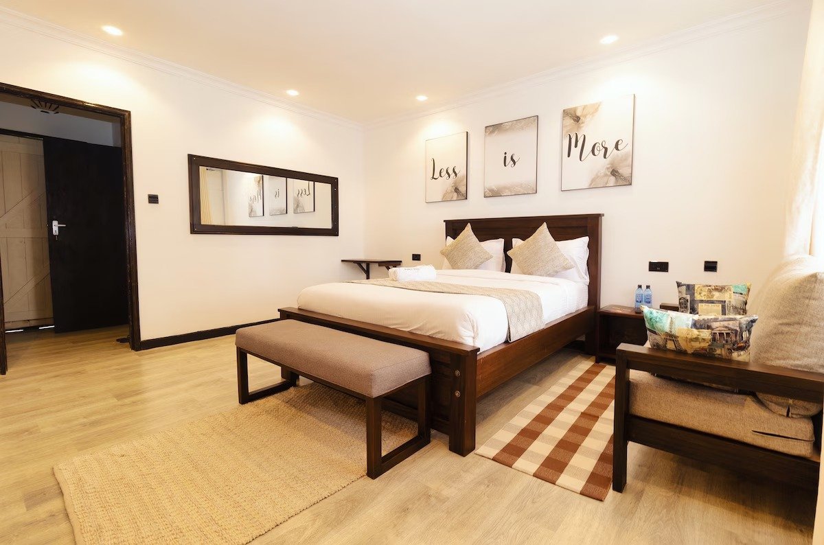 This stylish place is centrally located in Nanyuki town with beautifully designed space perfect for solo travelers or couples looking for a cozy and elegant place to stay. The studio is equipped with a comfortable queen-sized bed, a modern bathroom, and a cozy seating area.