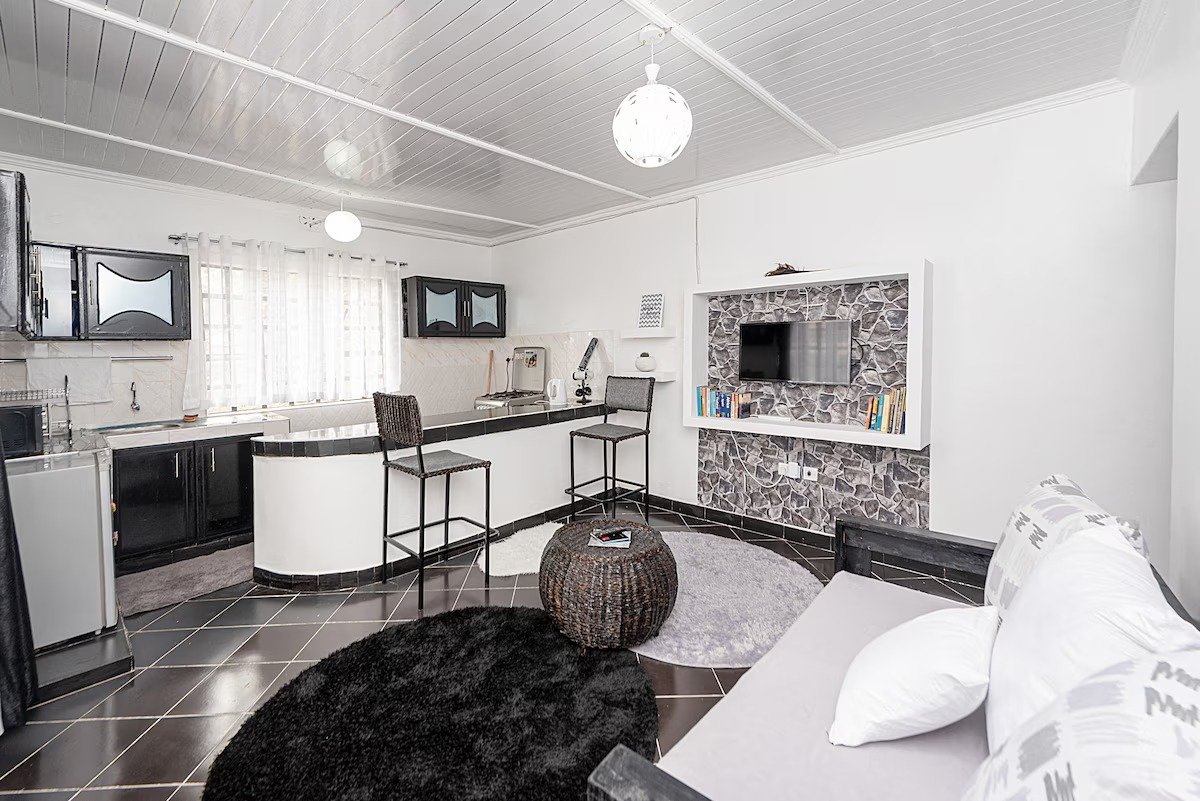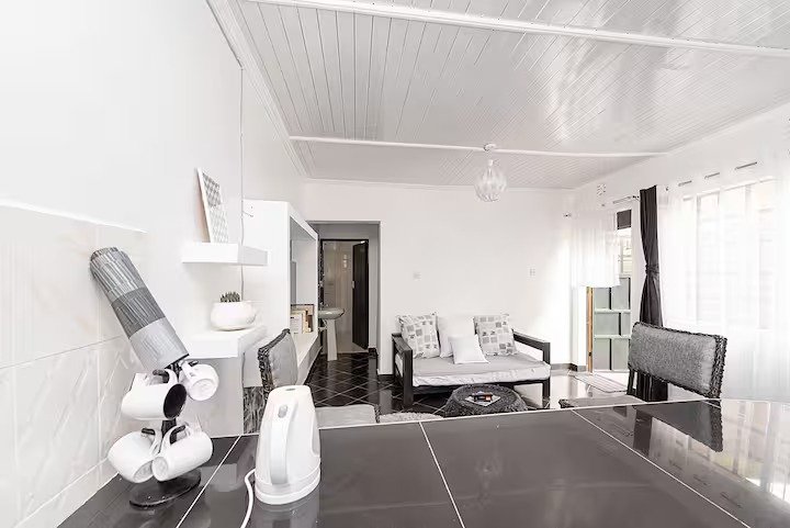A fully furnished house with appliances for everyday use in a large compound that is shared with me with a manicured lawn. Guests have access to the lawn. There’s a convenience store that is 1.3 Kms from the premises.