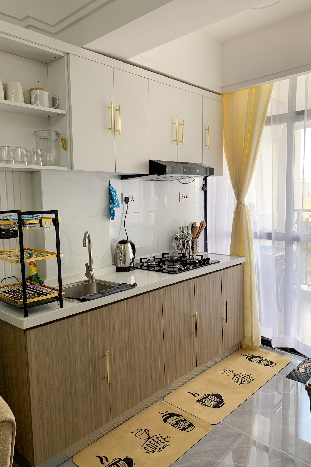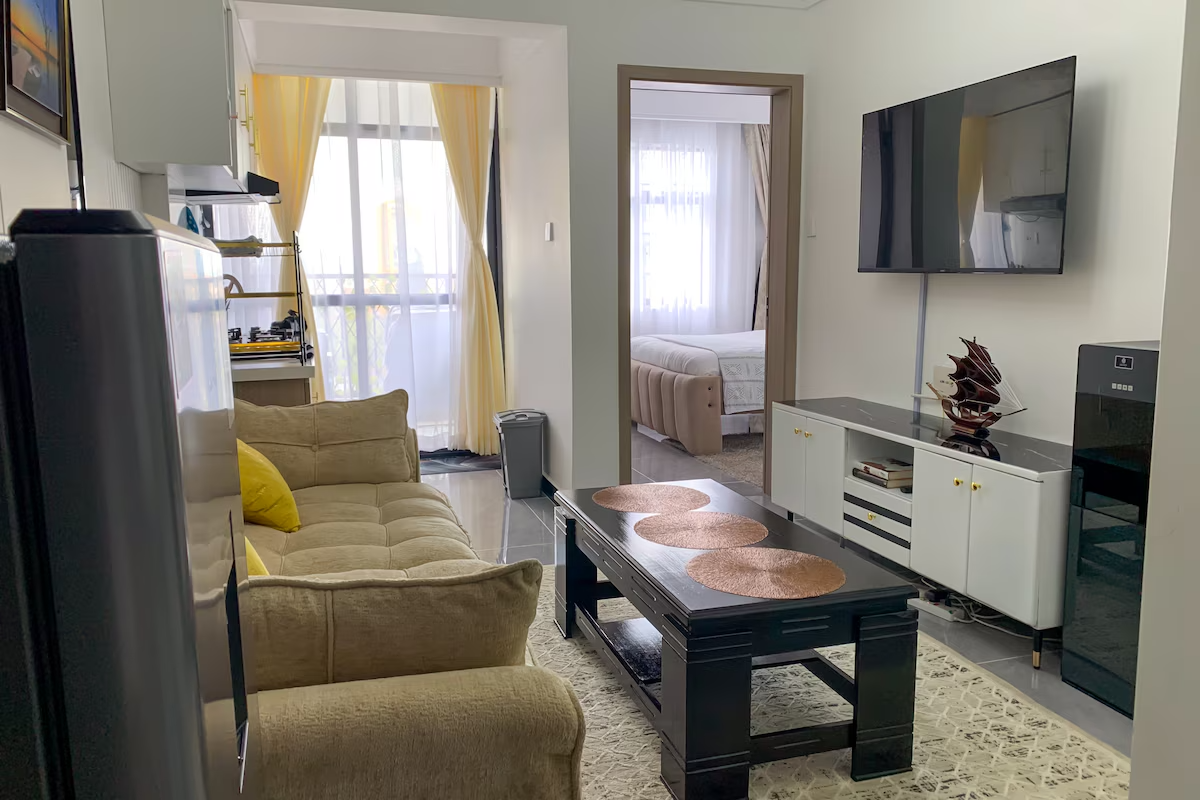 Centrally-located on the 14th floor in the heart of Kilimani, you get a perfect a view of the beautiful city landscape. Each space provided has a colorful and easy ambience. The kitchen is fully equipped should you choose to cook a meal or fix a drink. The living room and the bedroom are tastefully furnished with your comfort and hygiene in mind.