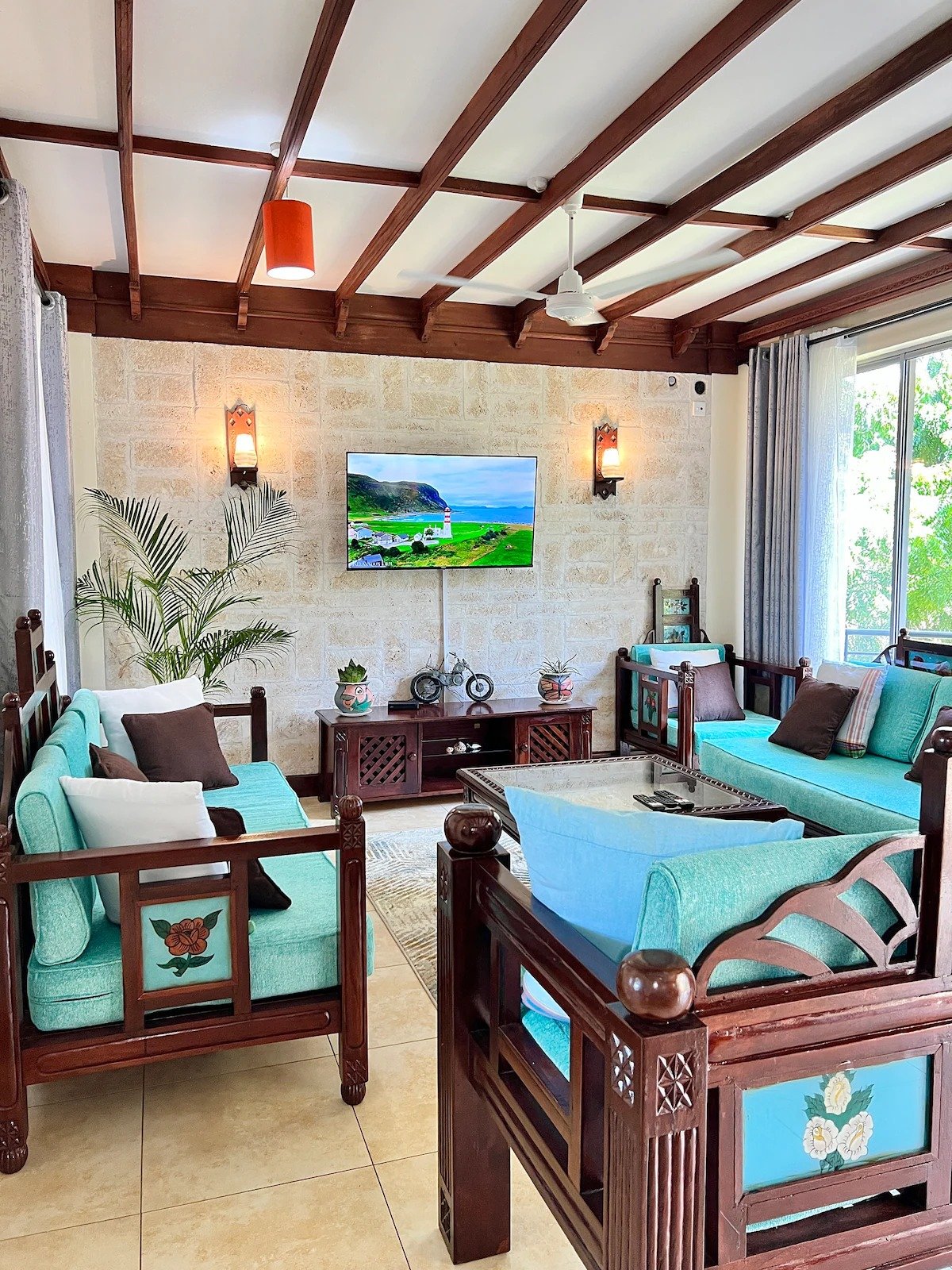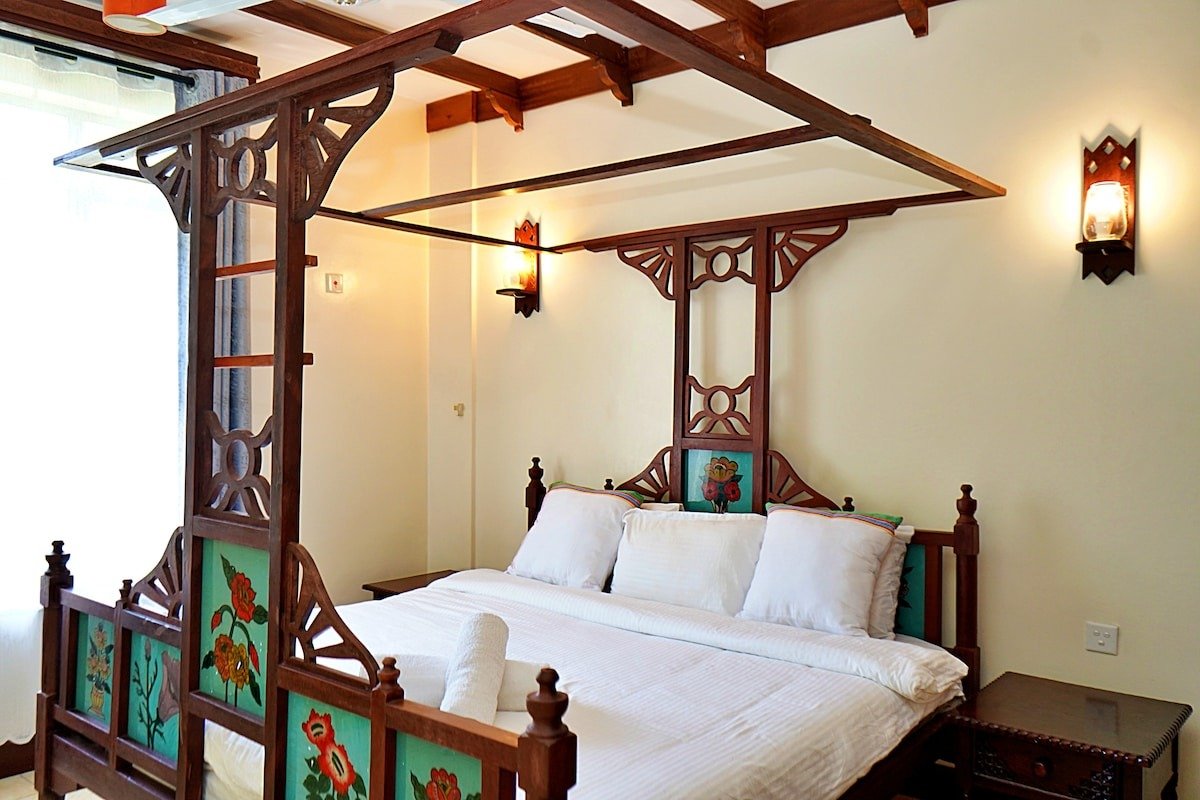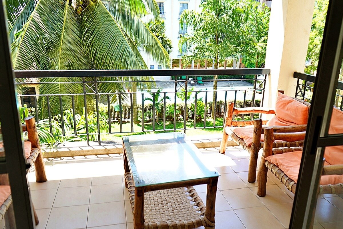 2 bedroom apartment decorated in an elegant modern Swahili finishes. The apartment offers; a Separate living room and dining area, A fully equipped Kitchen , a laundry area with a washing machine installed, air condition units in both bedrooms, shaded balcony area with seats and a coffee table, Wifi connectivity, TV with Netflix configured and a dedicated parking spot clearly marked.