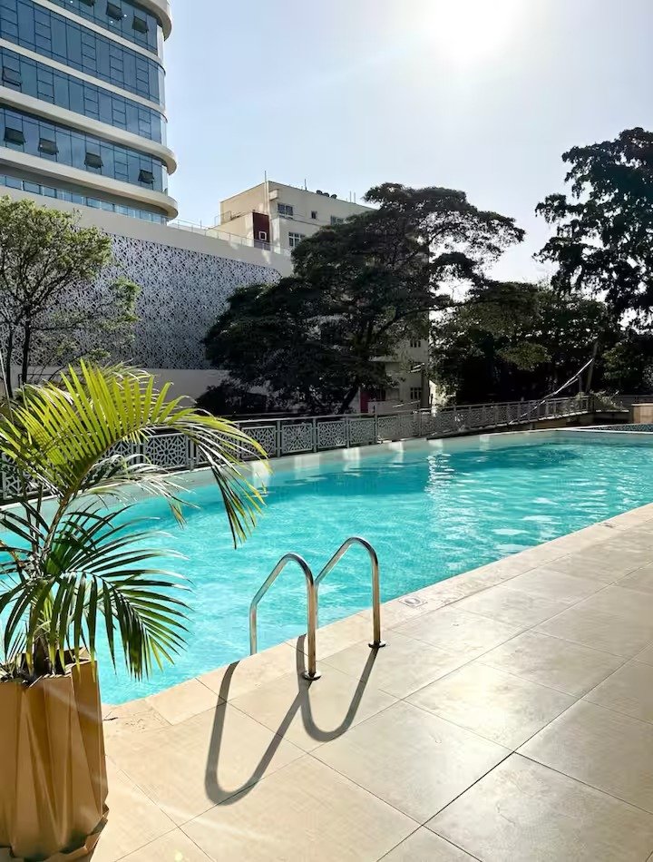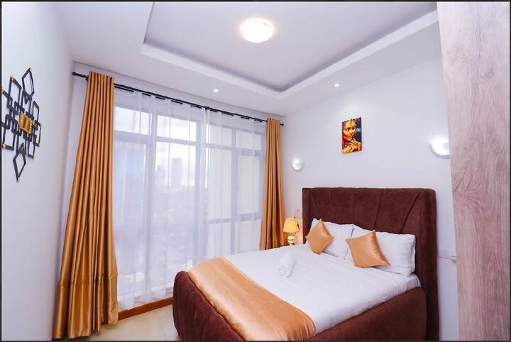 Aramis offers a stylish and family-friendly 2BR apartment in the heart of Westlands, perfect for business trips, romantic getaways or family stays. With huge windows framing panoramic city views, a spacious living room, modern kitchen and cozy bedrooms, the space is elegant. Guests can enjoy access to a fully equipped gym, swimming pool, high-speed Wi-Fi, 24/7 security, elevators and secure parking. Conveniently located near lifestyle malls, a perfect blend of luxury and warmth for any traveler.
