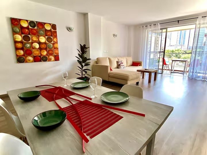 The apartment is situated of a new and modern building, a large balcony to sip your wine. High speed 20Mbps , a 55″ smart TV with Netflix. The building has full back up generator. The dining table offers working space for the business travellers. Selected African and modern decor details make the apartment stand out.