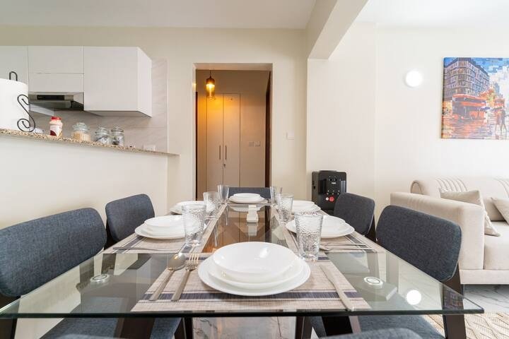 Equipped with a two-seater outdoor set and outstanding views of the neighborhood, grass carpeted