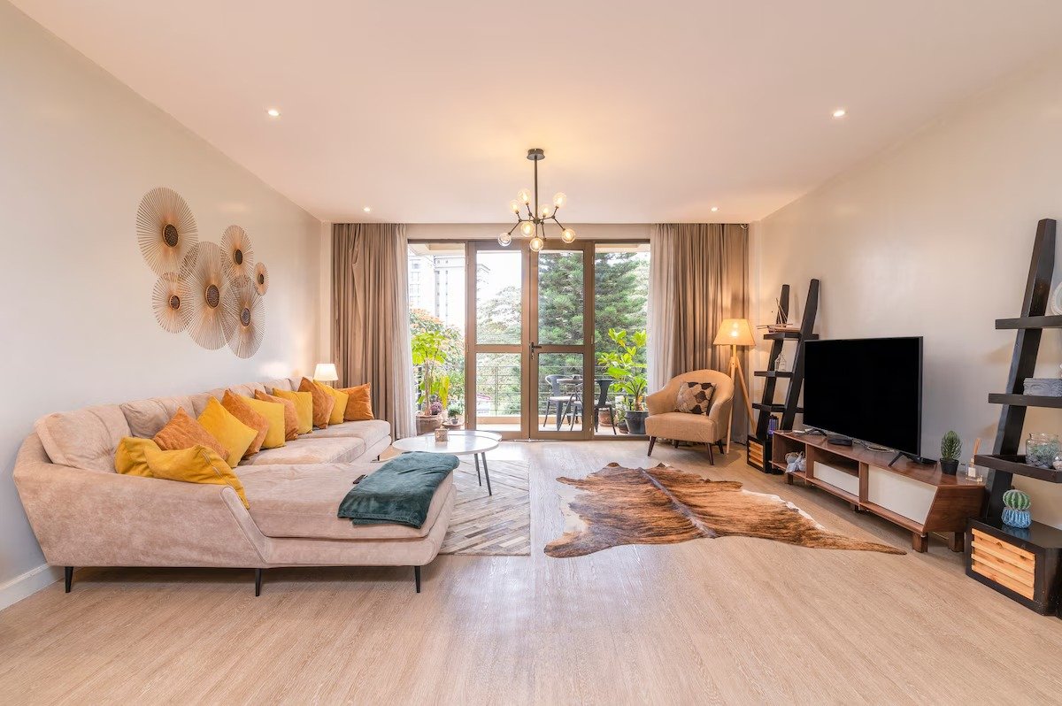 This two-bedroom apartment tucked away in the heart of Westlands is bordered by nature and an urban area filled with plenty of stores and restaurants, giving you the best of both worlds. The space’s bohemian and natural design provides a warm and relaxing living environment.