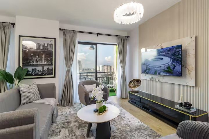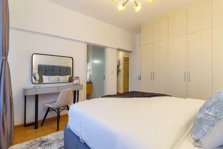 The apartment is set on the higher floors affording guests National Park and Ngong Hills views. Breath-taking views at night from the balcony allow you to relax as you unwind after a long day. This luxury two bedroom two bathroom apartment is replete with amenities that will make you feel right at home.