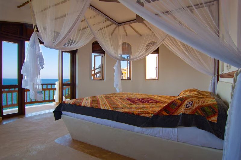 The perfect honeymoon cottage filled with charm and character. The ideal get away for a romantic holiday. The cottage is sea facing from all aspects including the en suite master bedroom upstairs with panoramic ocean front balcony and, a fully equipped sitting room and kitchen & dining area downstairs also with its own balcony. It provides comfort, privacy and seclusion. There is a second adjacent cottage that sleeps two adults in an en-suite twin bedroom which must be booked separately by paying the additional charge of USD 30 per person per night. The cottages come with a team of staff who will assist to clean and shop for you.