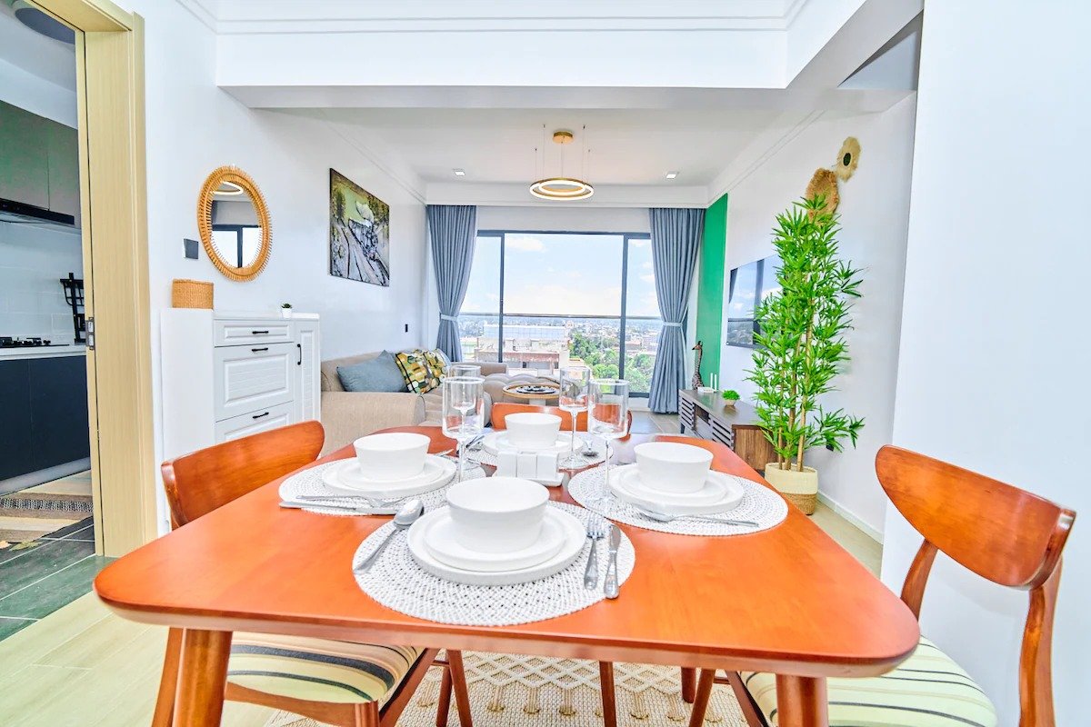 Welcome to this charming 2-bedroom apartment on the 15th floor in the heart of Lavington. Set within a secure gated community, it offers stunning sunset views of the Nairobi skyline and the beautiful Ngong Hills.