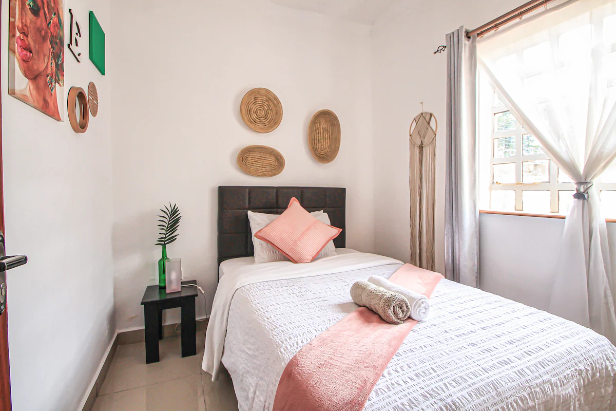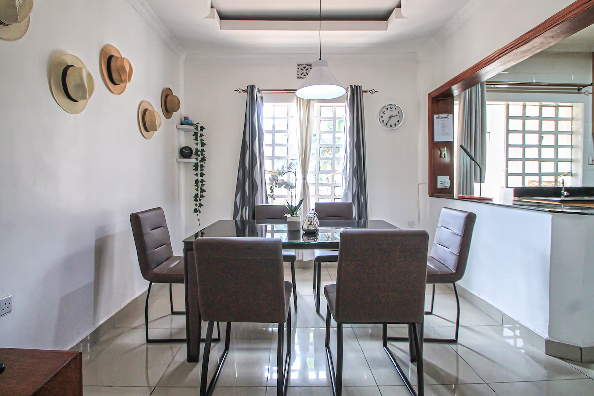 Its a clean, crisp and airy 3 bedroom home about 1 km from the gate of the Lake Nakuru National Park- Lanet Gate.