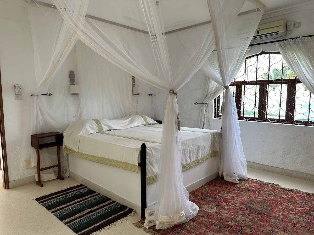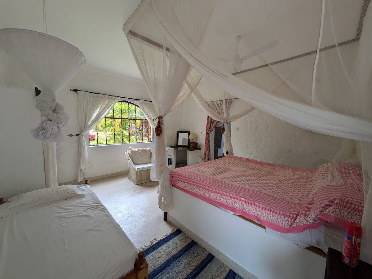 Each bedroom is furnished with large double beds, and two rooms also have additional single beds. All rooms are equipped with mosquito nets, fans, and air conditioning to ensure a comfortable stay. The bedrooms come with ensuite bathrooms, each featuring a shower.
