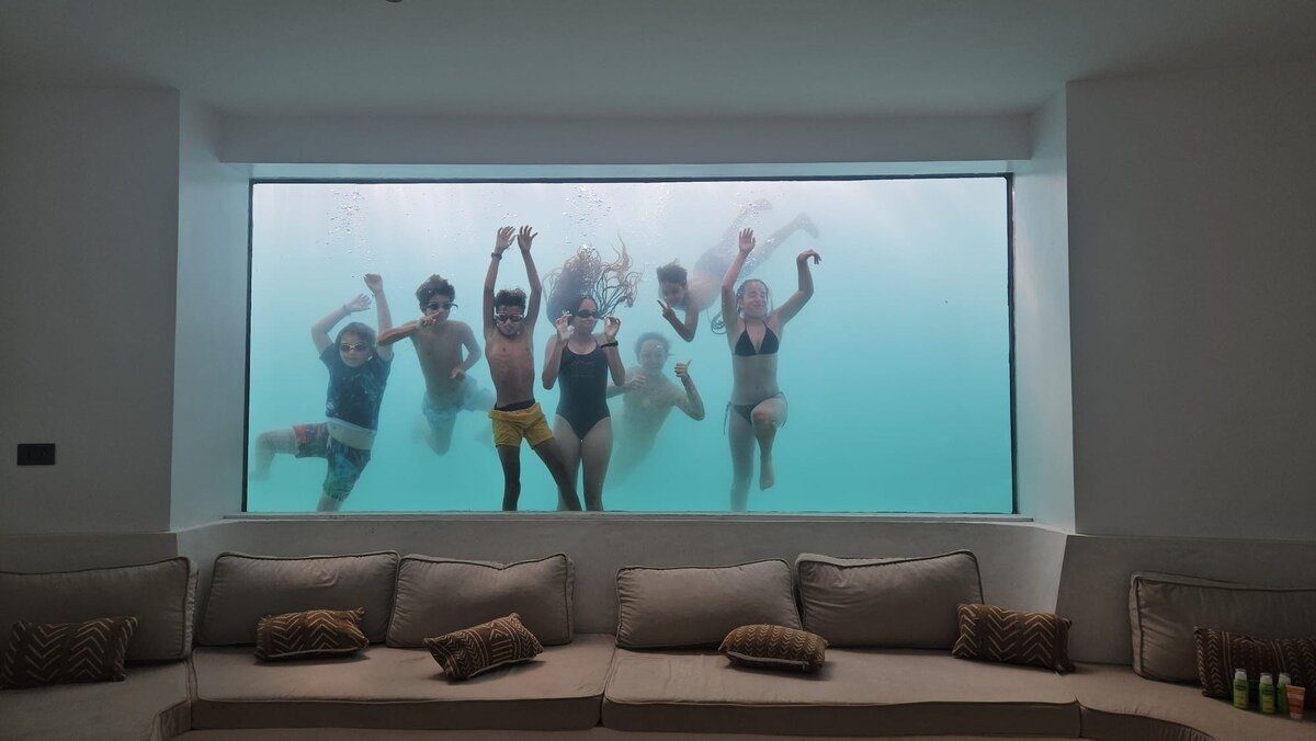 • A giant cargo net suspended over the music room, ideal for lounging or reading.