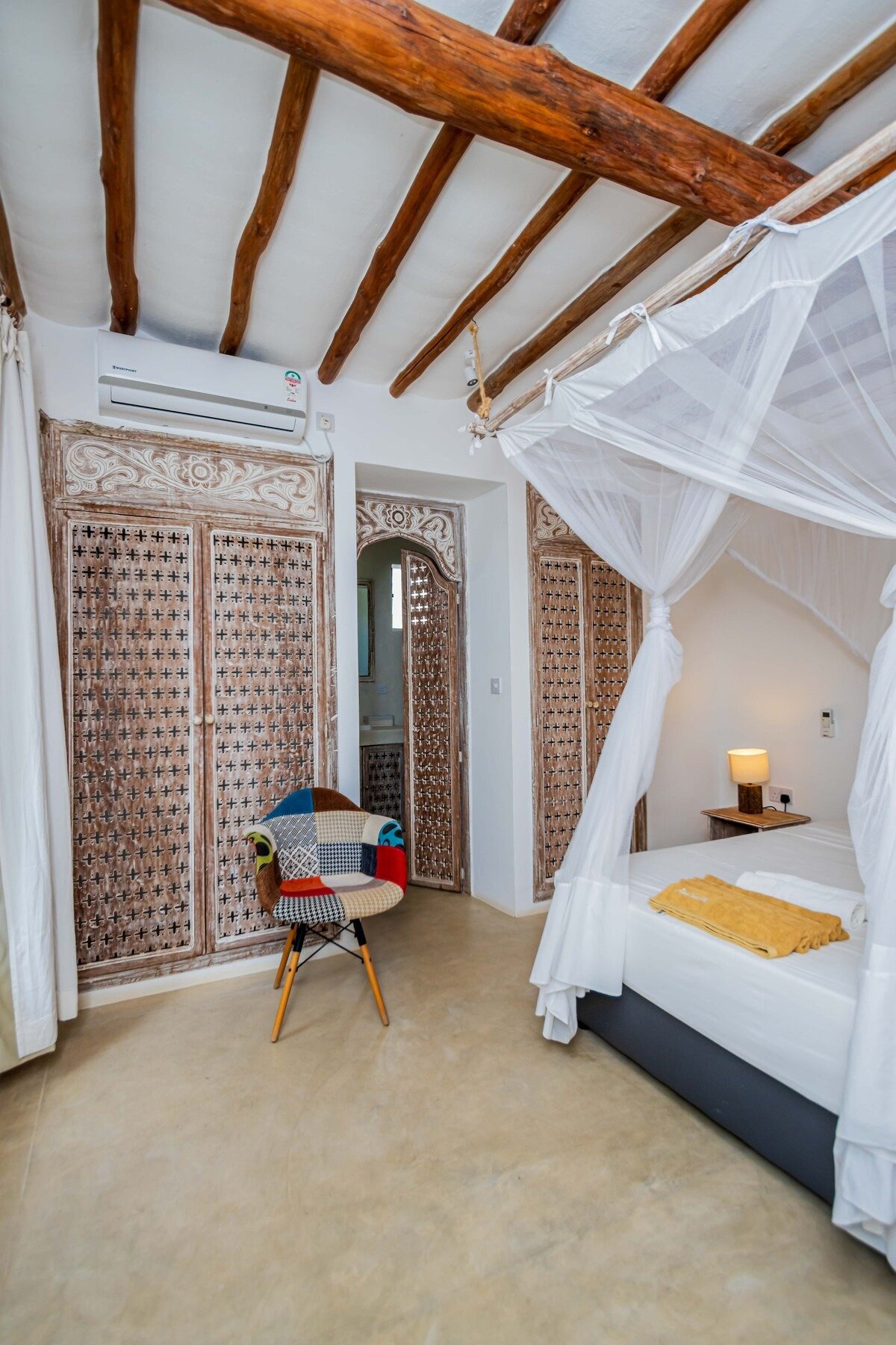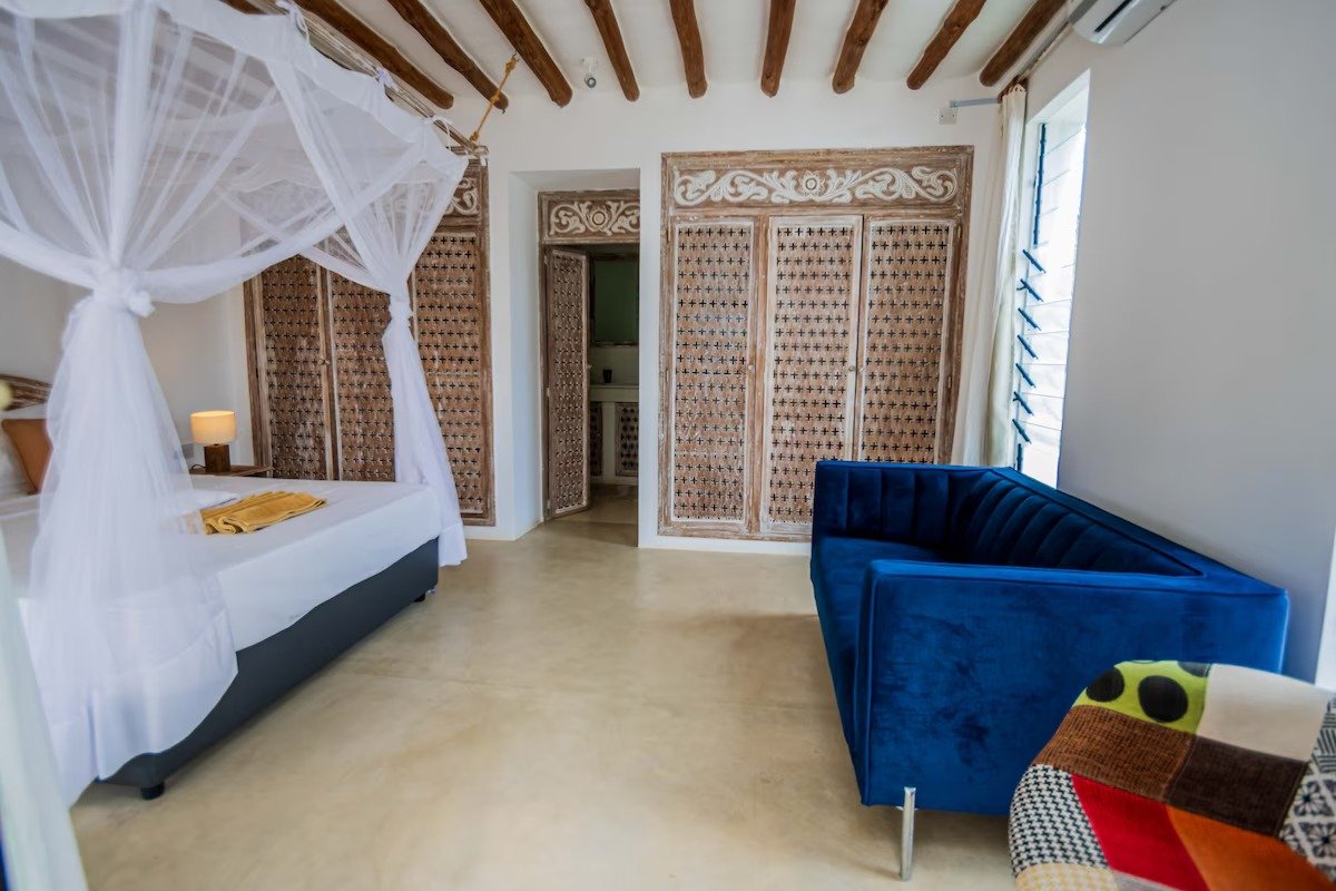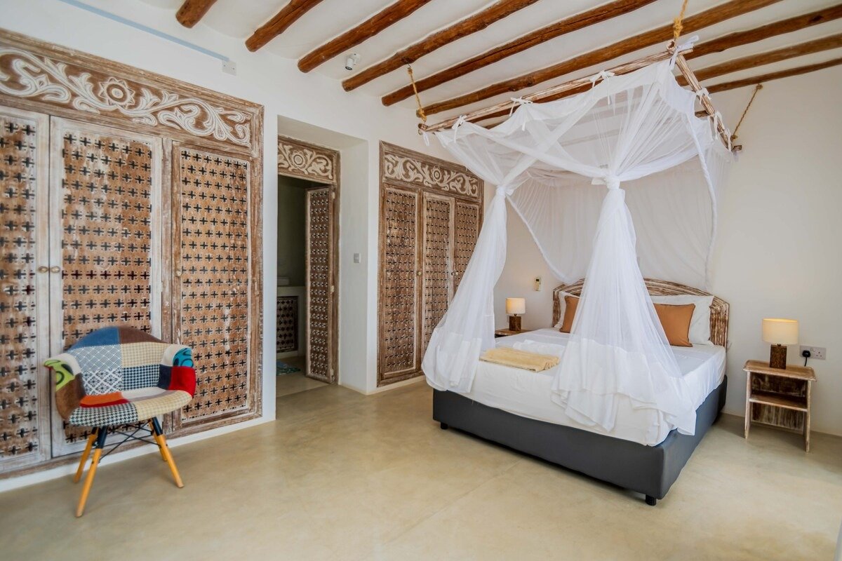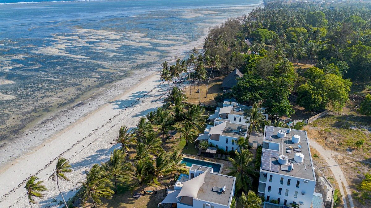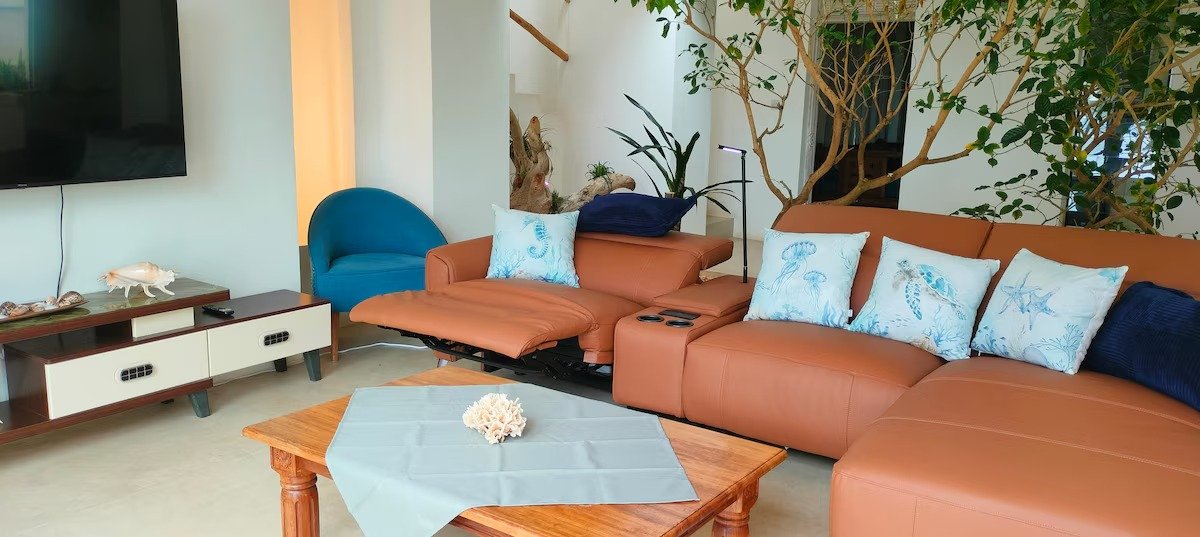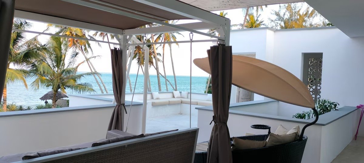 Our Beachfront Villa No. 1 is located directly on the quiet, white sandy beach on the north coast of Kenya. The house is located on a walled property equipped with a security fence and outdoor cameras and guarded at both entrances and exits. The Ahadi area is not far from the large city of Mombasa. Our villa offers a fantastic view of the white sandy beach and the expanse of the Indian Ocean from all rooms.