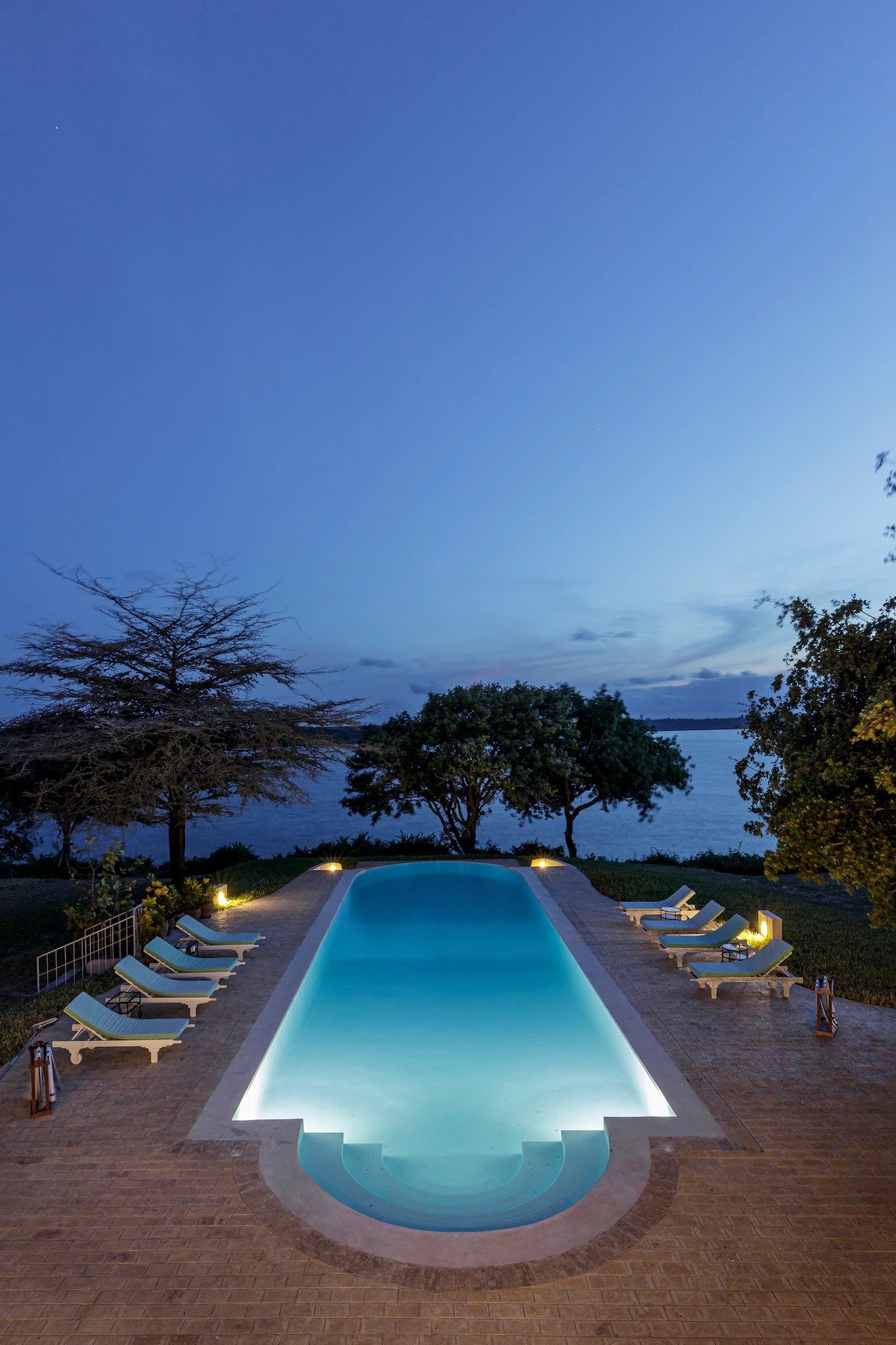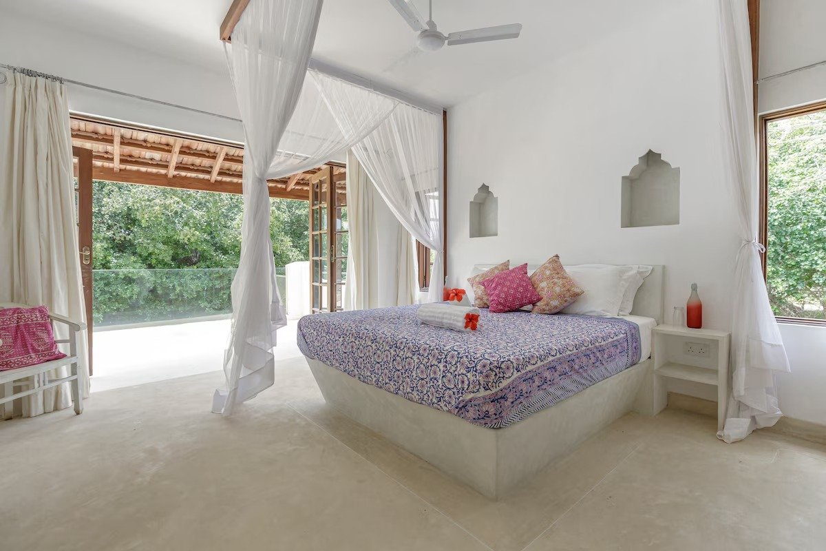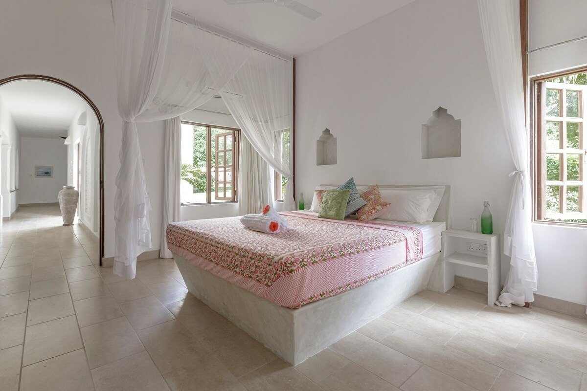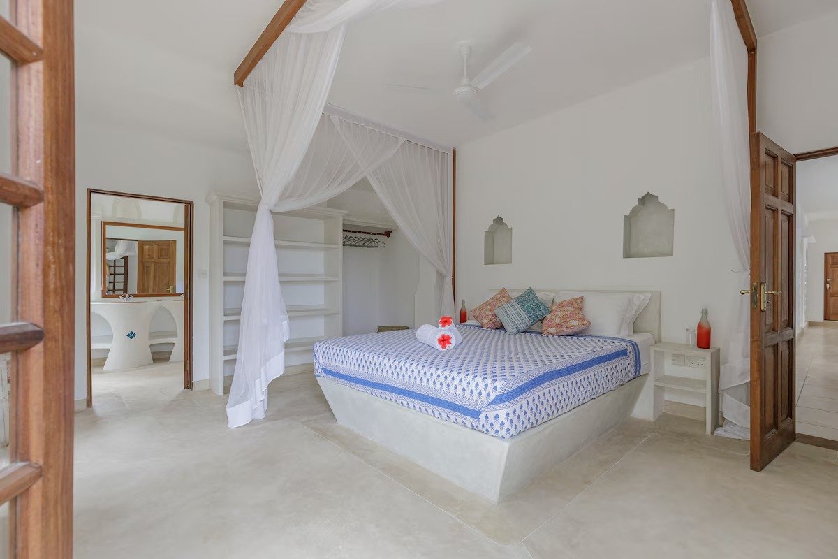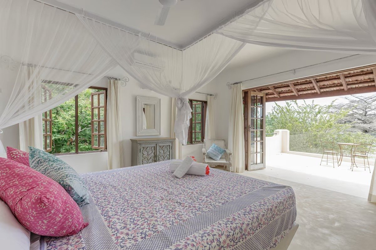 5 large double bedrooms overlooking the Creek, each with ensuite bathrooms, air-conditioning, overhead fans, and mosquito nets