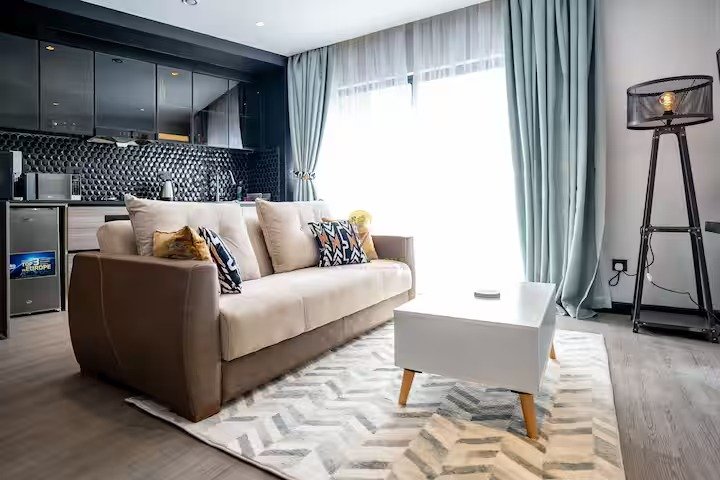 Our cozy apartment offers flexible sleeping arrangements with a stylish sofa couch that easily transforms into a comfortable second bed. Whether you’re traveling with family or friends, this versatile seating option ensures everyone has a comfortable place to rest. Enjoy the convenience of having both a sofa and an additional sleeping space in our well-appointed apartment.