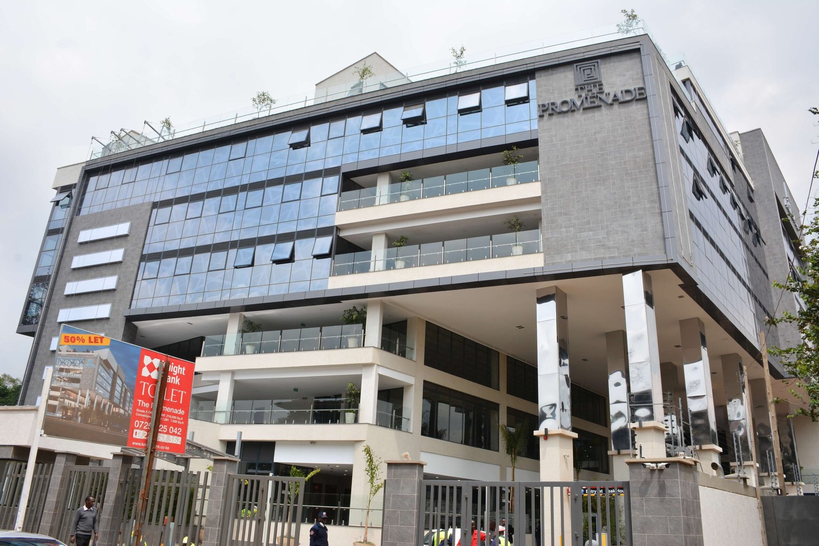 It is equipped with main power connections of 500KVA and a 500KVA backup generator. Eight high-speed passenger lifts serve the building, ensuring smooth vertical circulation.
