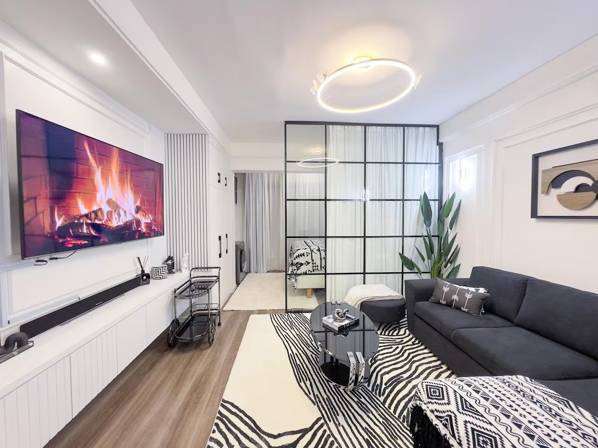 Modern, elegant studio in the heart of Kilimani with stunning city views. Enjoy an infinity pool, gym, kids’ play area, pool table lounge, and on-site minimart.