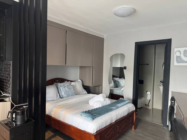 Kennedy’s Studio is located on the 12th Floor of a very modern & stylish block of Apartments (Escada) at the heart of Westlands in the city of Nairobi. Its a 5 minutes walk to the Westlands CBD where Sarit Centre, the Mall and other major shopping centers are located. Naivas and Quickmart retail chains which operate on a 24 hour basis are a stone throw away. The views from the Apt are spectacular. The expressway has made the trip from the Airport to the Apt just 15 mins to 20 mins.